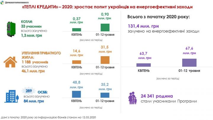 Отмечается, что только с 1 по 12 мая банки выдали 67 млн грн “теплых кредитов” населению и ОСМД на энергосберегающие мероприятия.
